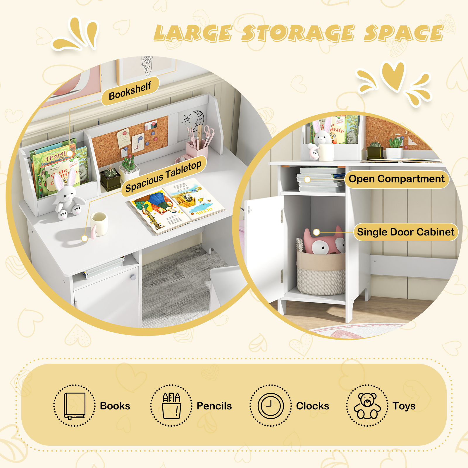 COSTWAY Kids Table and Chair Set, Children Study Table with Chair for Arts, Crafts, Homework, Home School Student Writing Desk w\u002F Hutch, Cabinet, Bulletin Board, Whiteboard & Marker for 3+ Years Old