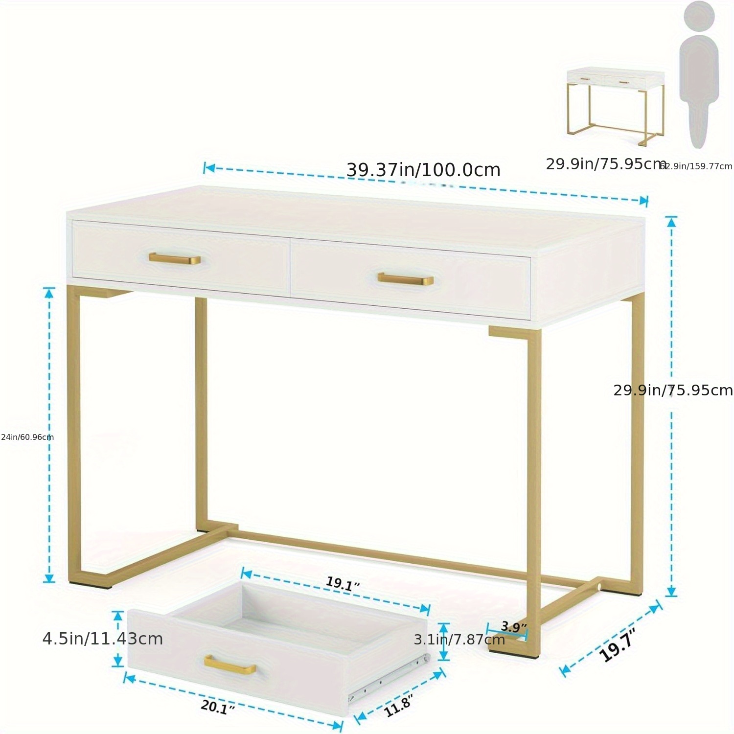 Modern Compact Computer Desk with 2 Drawers - Small Space Desk Suitable for Home Office, Bedside Writing Table, Sturdy Wood & Metal Frame, Spacious Tabletop, Assembly, Contemporary Study Desk